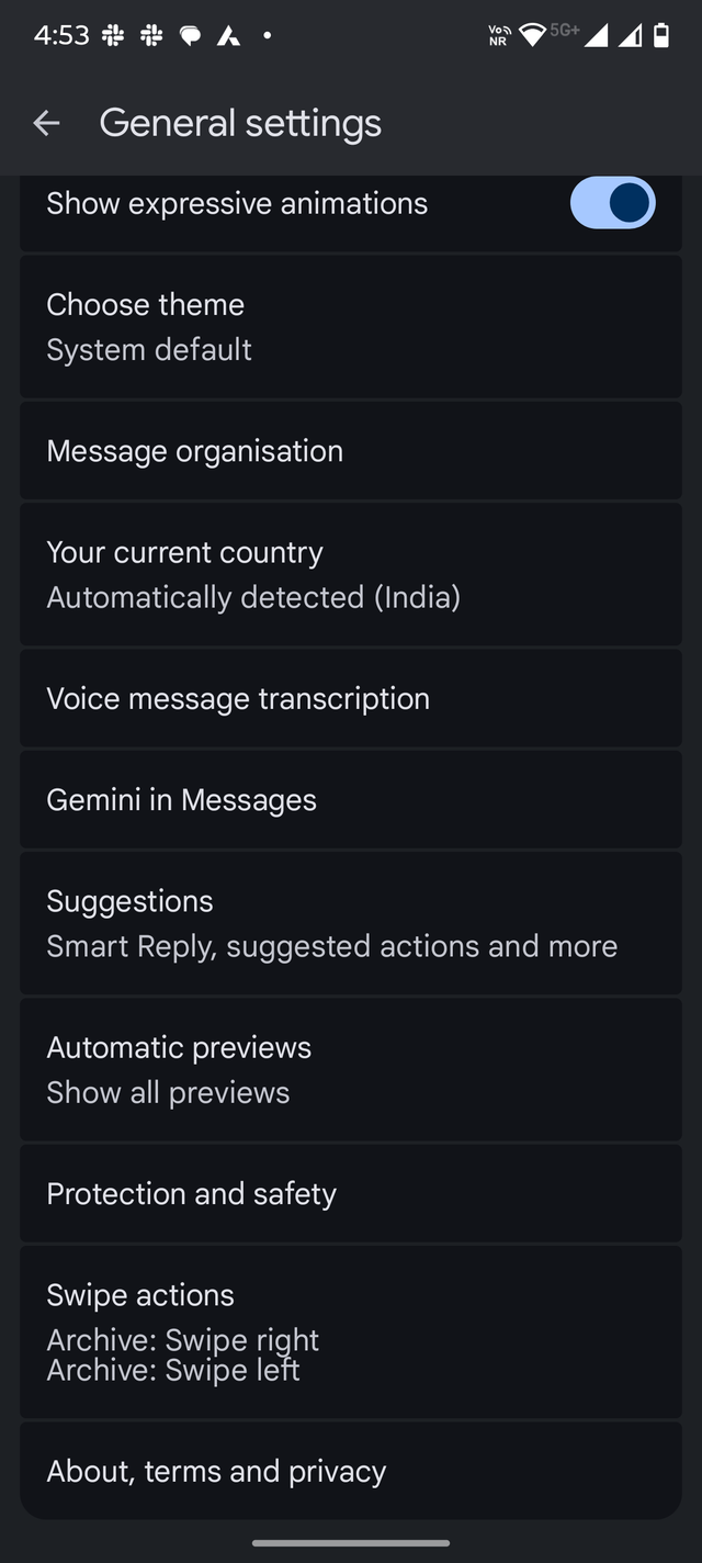 Você pode personalizar facilmente os gestos de deslizar no Mensagens do Google. Abra o aplicativo Mensagens do Google, toque no ícone de perfilVá para Configurações de mensagens > Em geral > Ações de deslizartocar Deslize para a direita ou Deslize para a esquerda para personalizá-los. Você pode atribuir a mesma opção a ambas as ações de deslizar.