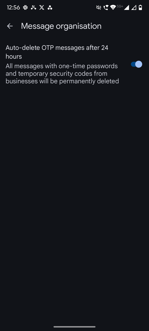 Você pode ativar esta função indo para Instituições > Organização de mensagens E então o Mensagens de telete automaticamente após 24 horas. Depois que isso foi ligado, você não precisa mais limpar um manualmente desses OTPs.