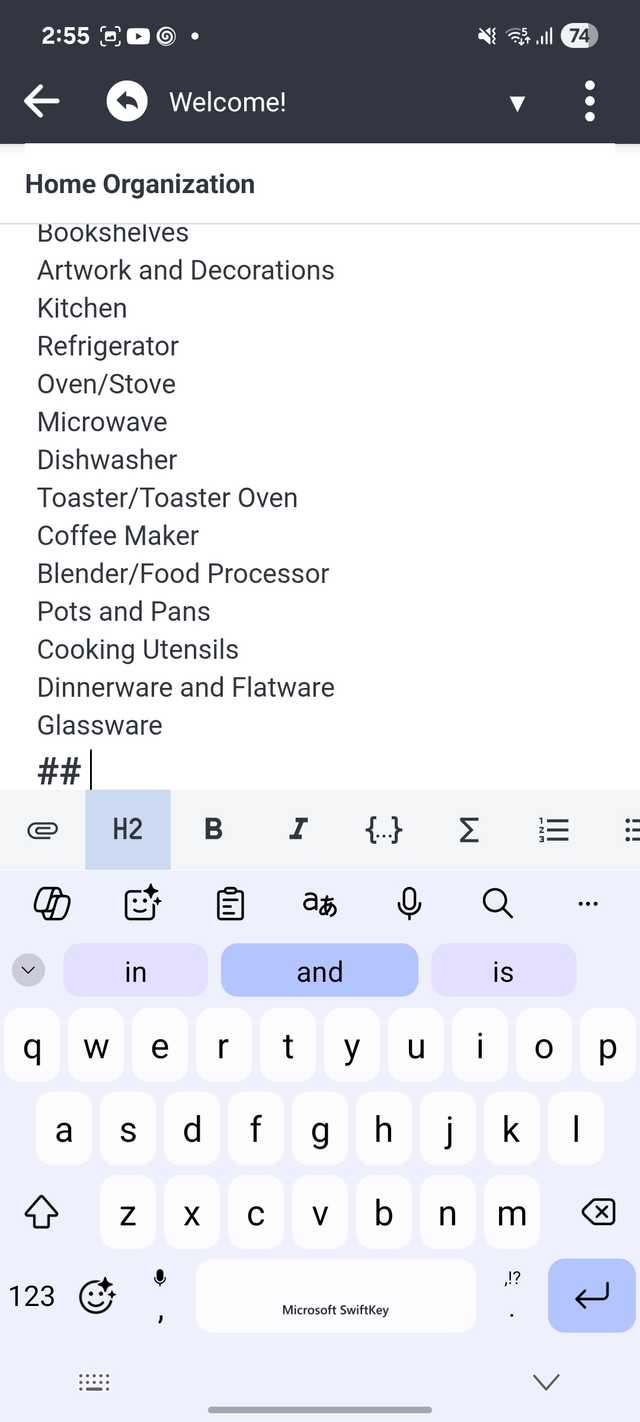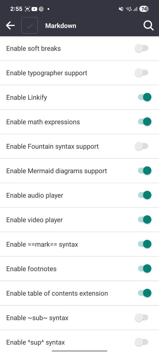 Joplin fornece uma barra de formato completa em cima da placa-chave. Ele me fornece rápido acessibilidade ao que eu exigir: títulos, listas de verificação fortes, blocos de código, tags e ainda mais.