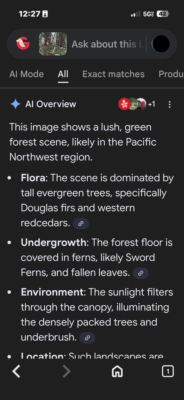 O resto estava total ou parcialmente errado. Por exemplo, tinha o gênero certo, mas uma espécie diferente. Em um caso, simplesmente descreveu a foto como uma cena de floresta com abetos e samambaias nativas.