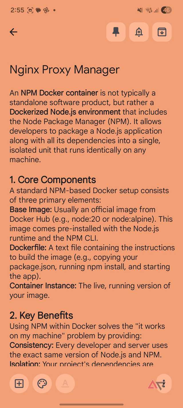 Com uma nova filosofia, criei uma nota mestra para a postagem do NPM e fixei-a. À medida que reuni comandos e links, adicionei-os àquela nota.