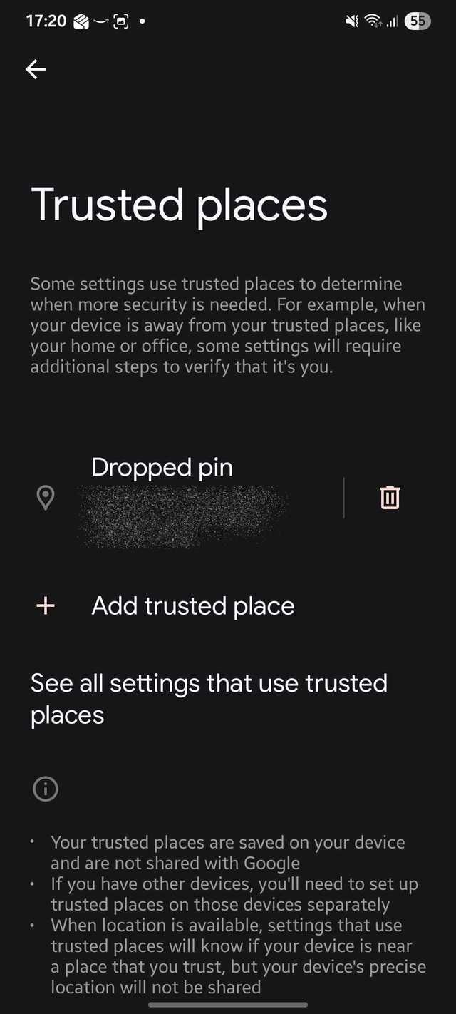 Você pode adicionar mais lugares se achar que não precisará de um PIN ou impressão digital nesses locais.