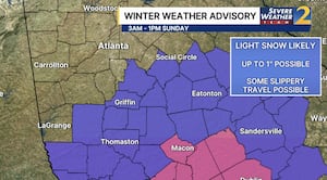 Um alerta de tempestade de inverno foi adicionado no centro da Geórgia, perto de Macon e Dublin, onde é possível atingir 1 a 3 polegadas.