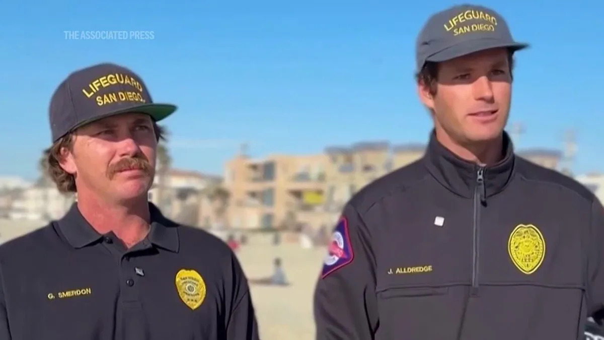 Cão de resgate de salva-vidas levado para o mar pela correnteza de San Diego