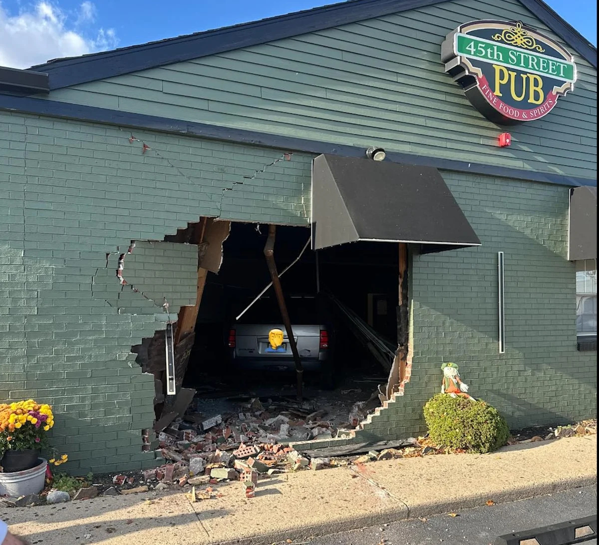 O carro acabou dentro do 45th Street Pub na Route 130 em Edgewater Park por volta das 15h15 de sábado.