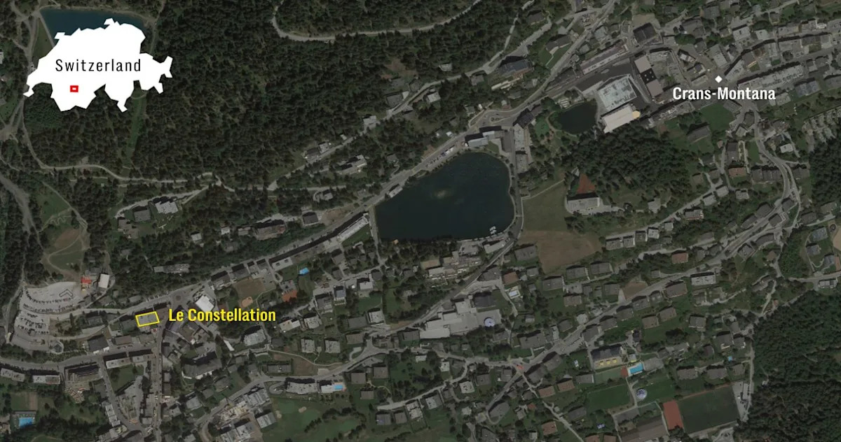 A sofisticada cidade turística de Crans-Montana, 40 quilômetros ao norte da montanha Matterhorn e a cerca de 240 quilômetros de Zurique, é popular entre turistas da Grã-Bretanha e de outros lugares, que vão lá para esquiar e curtir a atmosfera de festa.
