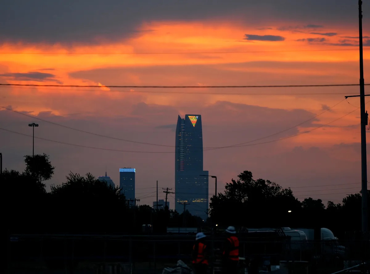 O horizonte de Oklahoma City é retratado em Bricktown, em Oklahoma City, na segunda-feira, 19 de agosto de 2024.