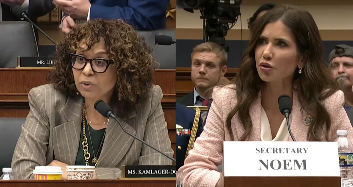 Secretário do DHS Kristi Noem deputado rasgado. Sydney Kamlager-Pomba (D-CA) por “venda de lixo de tablóide” na quarta-feira, quando o legislador perguntou se ela já havia dormido com Corey Lewandowski- enquanto o marido de Noem estava sentado logo atrás dela.