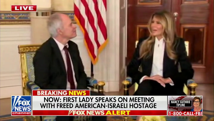 Melania Trump aproveitou uma reunião na Casa Branca com dois reféns israelense-americanos libertados para divulgar seu novo filme, enquanto as críticas negativas continuam a atormentar sua estreia nas bilheterias. A primeira-dama, muitas vezes tímida com a mídia, permitiu que repórteres entrassem na Sala Azul da Casa Branca na quarta-feira, enquanto recebia Keith e Aviva Siegel, que foram capturados pelo Hamas em 7 de outubro de 2023. Aviva Siegel foi libertada de Gaza após 51 dias, durante a presidência de Joe Biden, enquanto Keith Siegel passou dolorosos 484 dias em cativeiro antes de finalmente ser libertado 12 dias após o segundo mandato de Donald Trump.