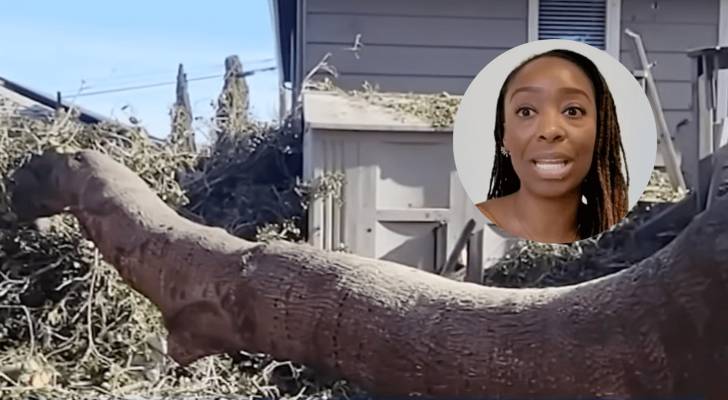 Como a árvore estava tecnicamente localizada no quintal de seu vizinho, o avaliador do seguro ofereceu cobrir apenas US$ 19.200,86 do dano total, deixando-a responsável pelo restante: US$ 51.399,97.