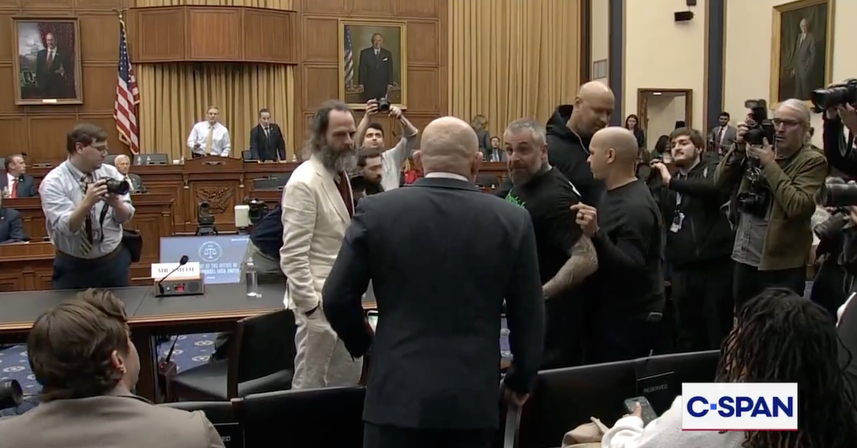 As imagens do momento tenso foram capturadas pela CSPAN e outros repórteres da região.