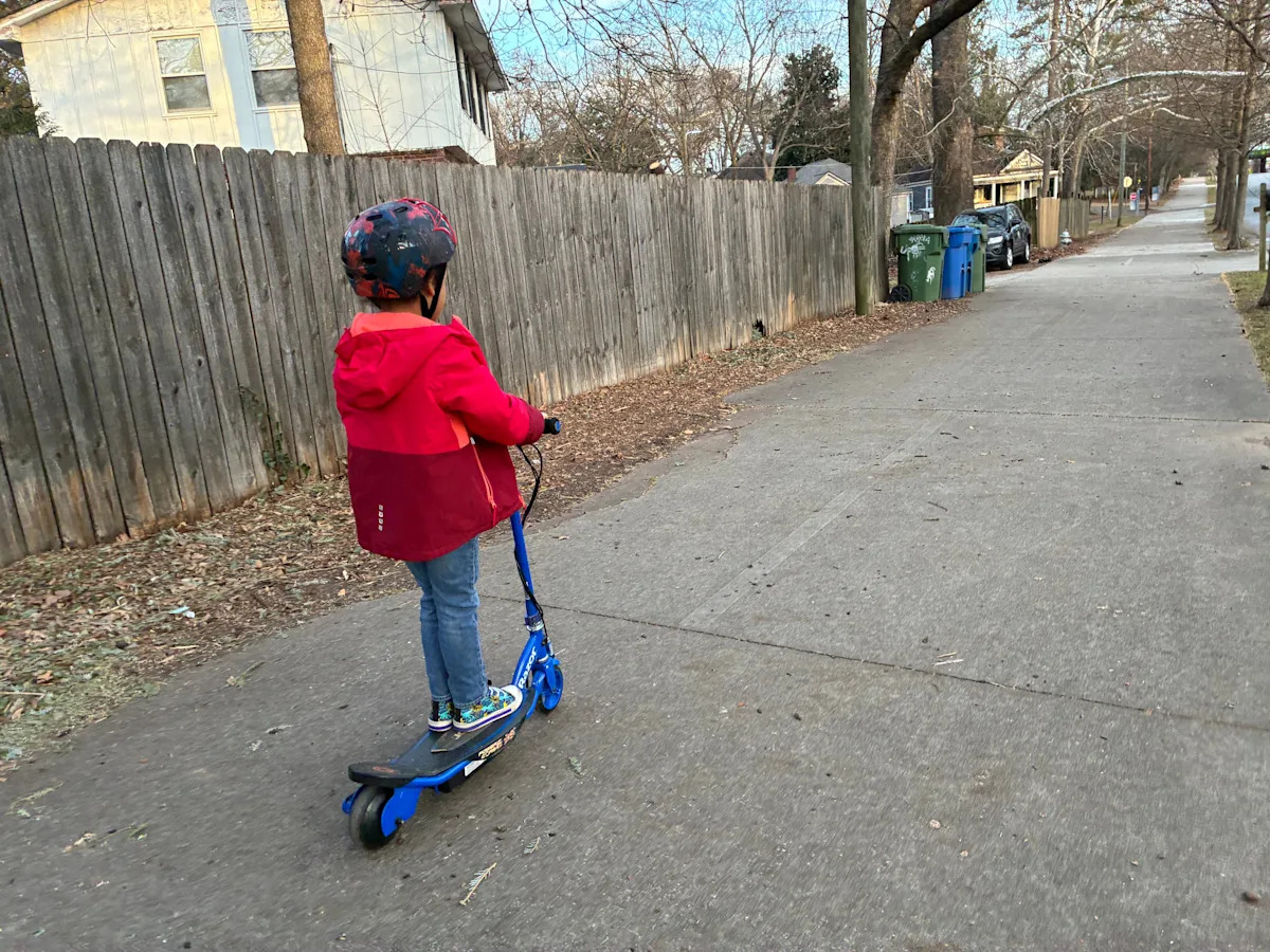 O filho de Shirley e Pleasants mostrado em uma câmera circular com sua scooter em 4 de novembro de 2025.Cortesia de Mallerie Shirley